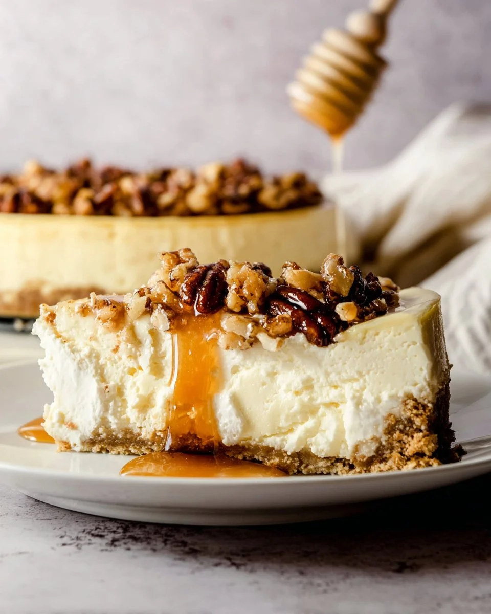 - Honey Walnut Topping: Drizzle honey over the cheesecake and sprinkle with coarsely chopped walnuts once cooled.