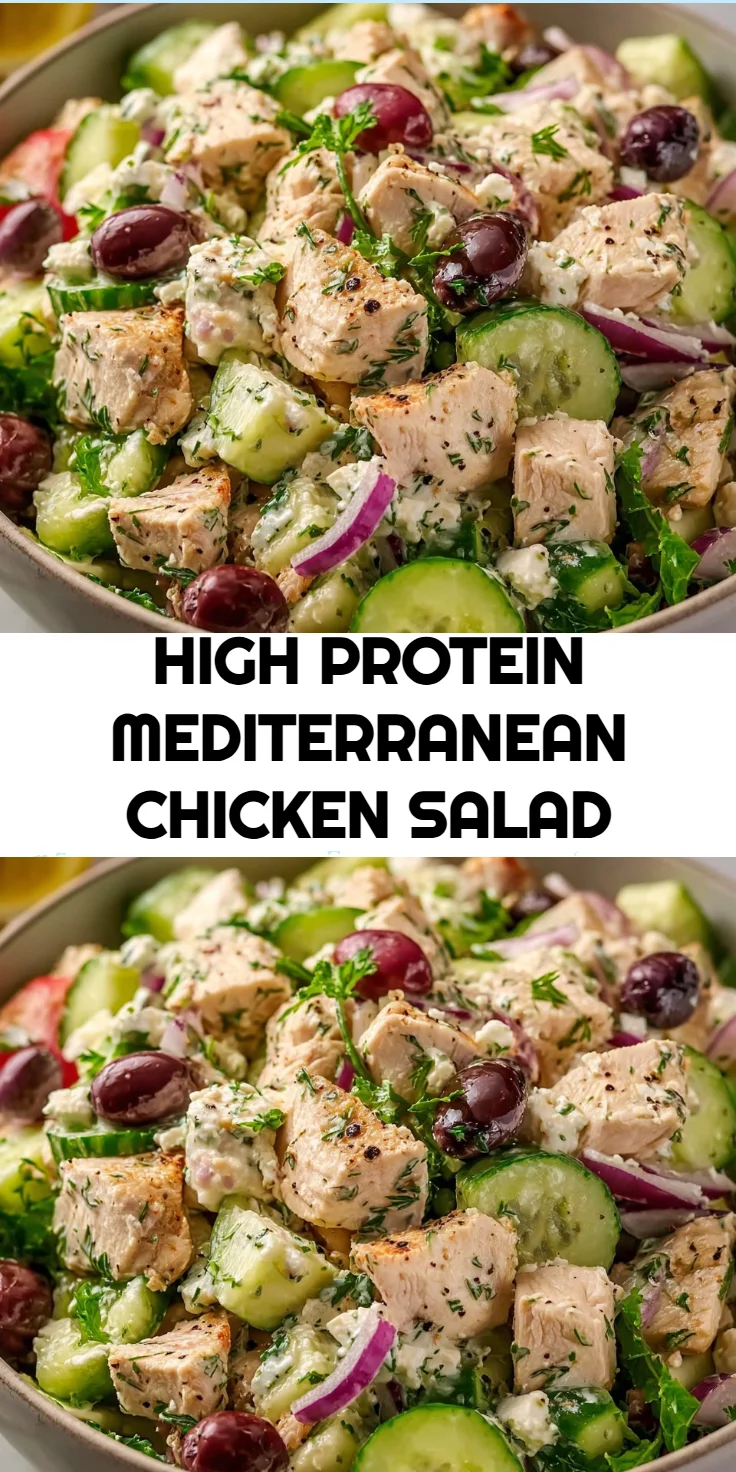 The High Protein Mediterranean Chicken Salad is more than just a meal; it’s a solution to cooking fatigue and a comforting reminder of wholesome family meals. It embodies healthy choices without compromising on flavor, making it an ideal fit for your weekly meal plan. If this recipe reminds you of someone you love, share it with them. Your memories keep recipes alive.