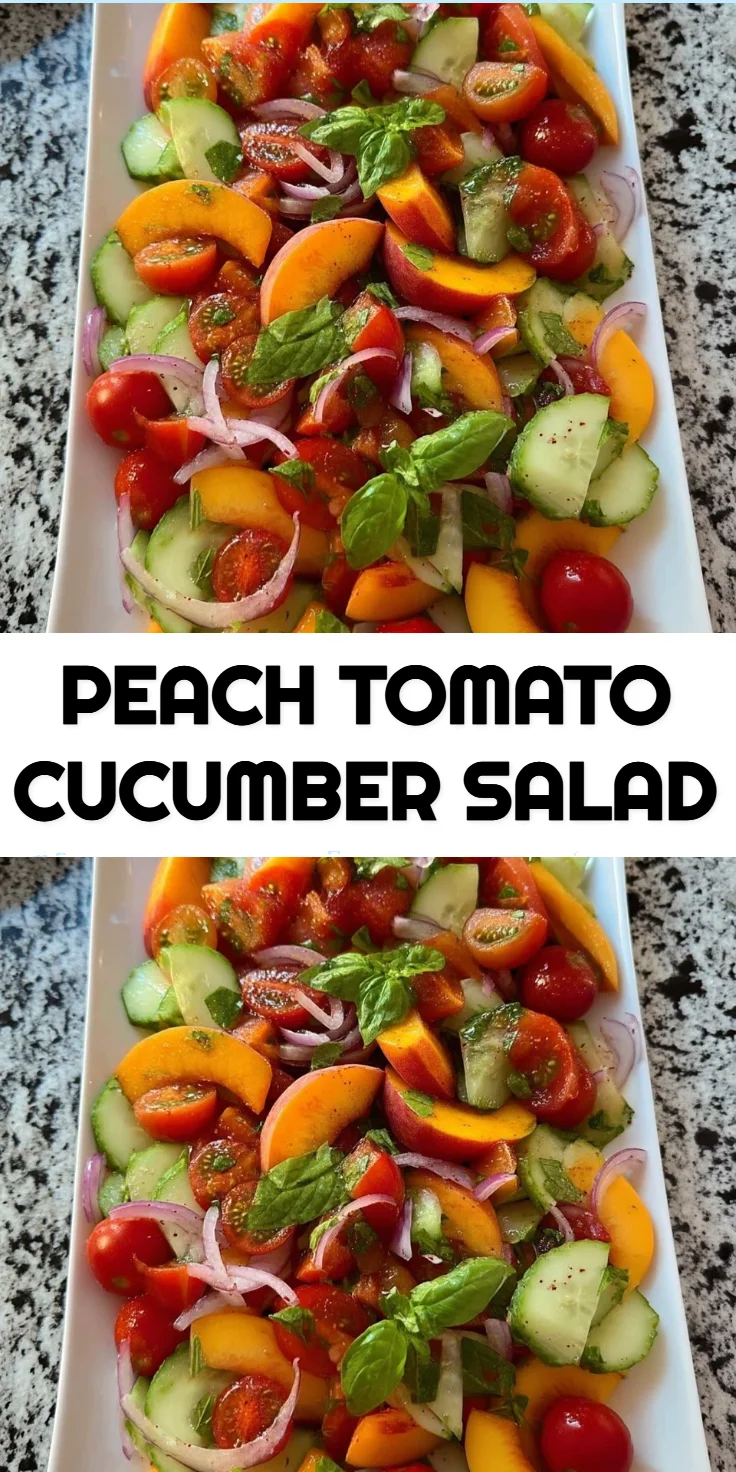 The Peach Tomato Cucumber Salad is a delightful way to incorporate fresh, seasonal ingredients into your diet. Its simplicity and vibrant flavors make it a versatile dish for any occasion. If this recipe reminds you of someone you love, share it with them. Your memories keep recipes alive. Enjoy the process of cooking and sharing; after all, it’s the little things that create lasting bonds.