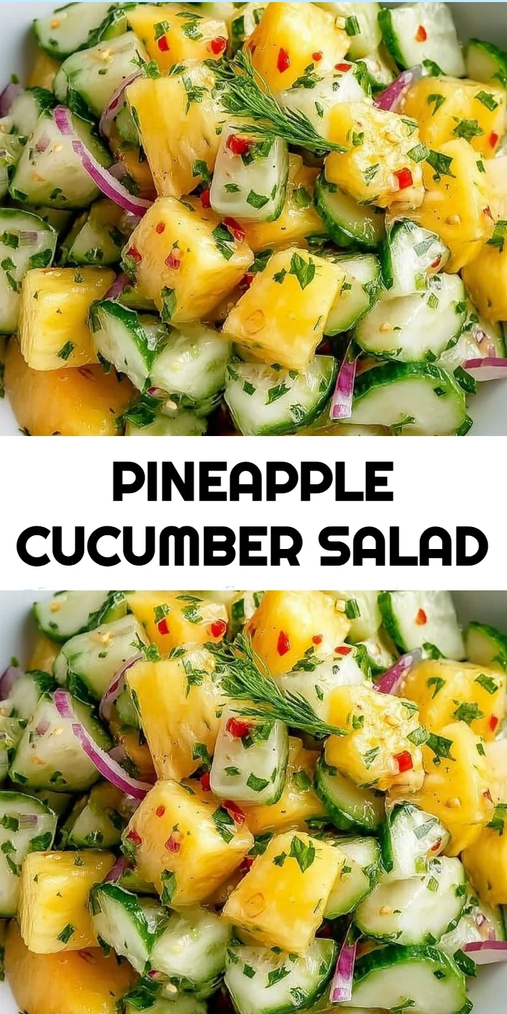 Pineapple Cucumber Salad is not just a dish; it’s a delightful experience that elevates any meal while addressing common issues like cooking fatigue and meal planning. It’s refreshing, healthy, and budget-friendly, making it a fitting choice for families looking to enjoy delicious meals without breaking the bank. If this recipe reminds you of someone you love, share it with them. Your memories keep recipes alive.